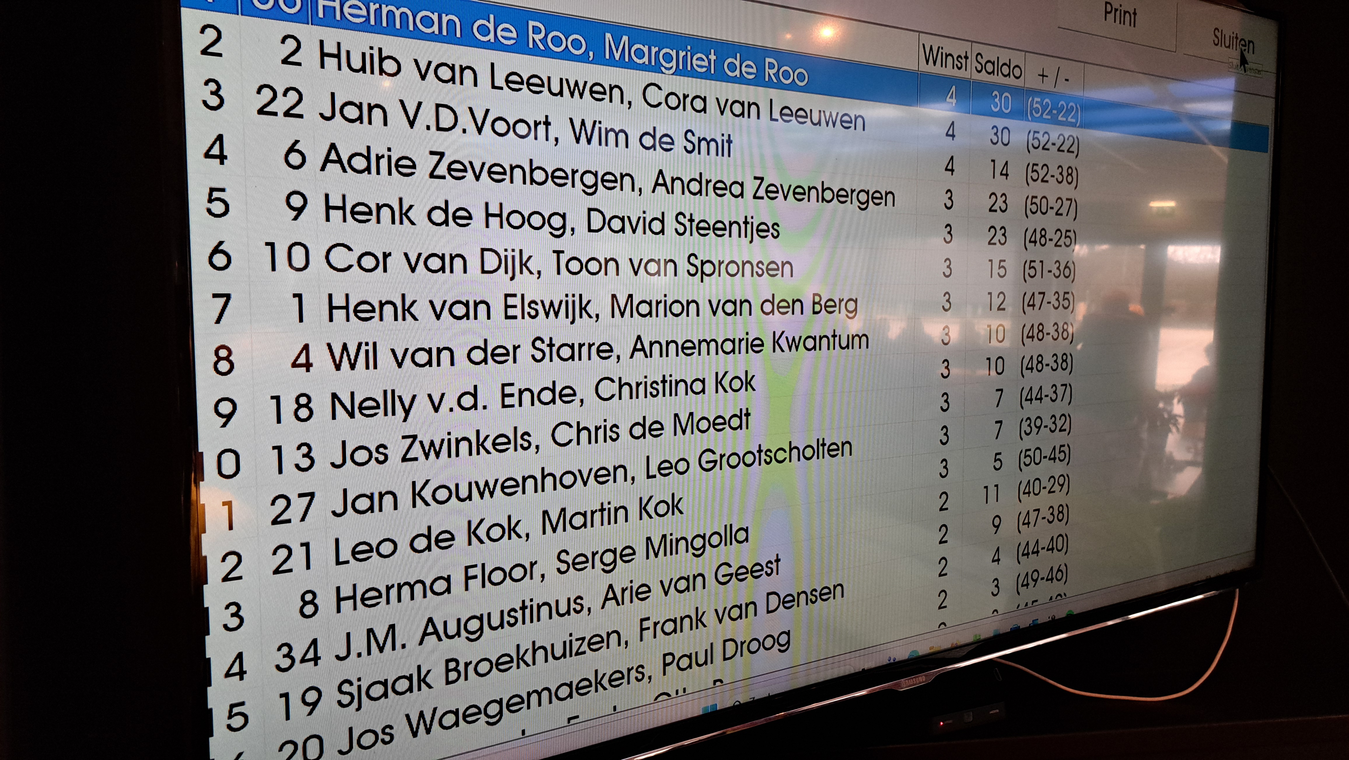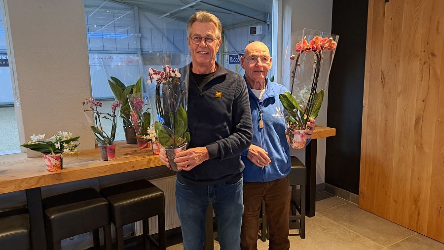 Maar hoe de namen ook luidden: de prestaties logen er niet om. Het duo Kok/Verleg – of moeten we zeggen De Smit/Van der Voort – wist knap een derde prijs in de wacht te slepen. Ook Ter Laak en De Smit (officieel spelend als Kok en Van der Ende) presteerden uitstekend en mochten eveneens met een derde prijs huiswaarts keren - kijk maar op bijgaande foto, dat is duidelijk ook een derde prijs! Een bijzondere dubbelslag voor Verburch ’97!